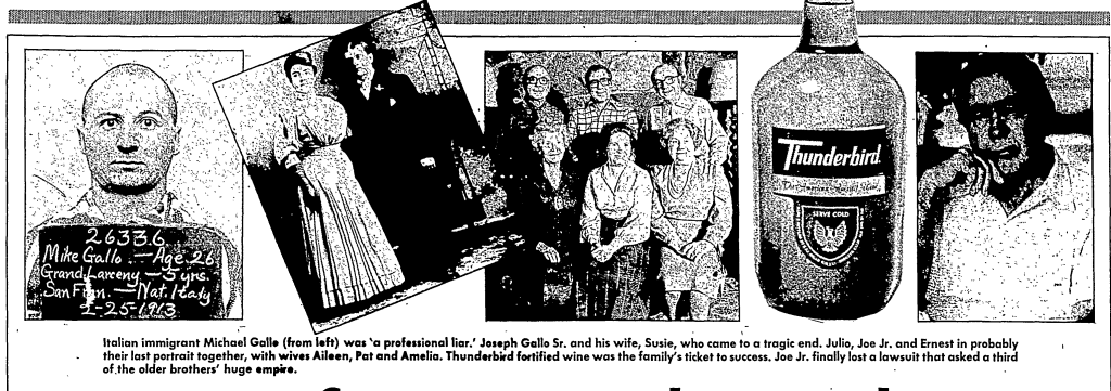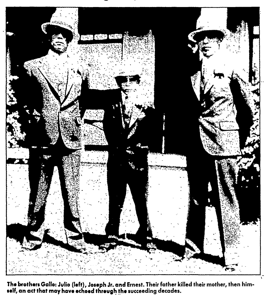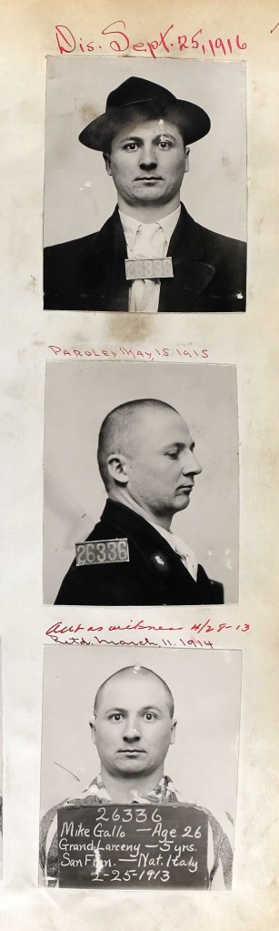 Mike and his brother Joseph Gallo (1882-1933), who married two sisters named Bianco started the Gallo Wine Co. in 1906. In 1933 Mike brother Joseph died who had begin mumbling to himself and showing other signs of mental illness killed his wife (Assunta “Susie” Bianco) and then killed himself. This such of behavior seemed to run in the family. Michael also tried to kill his wife (Tersilla Bianco), stabbing her repeatedly in the back as she ran for her life. He did more time in jail for that.
