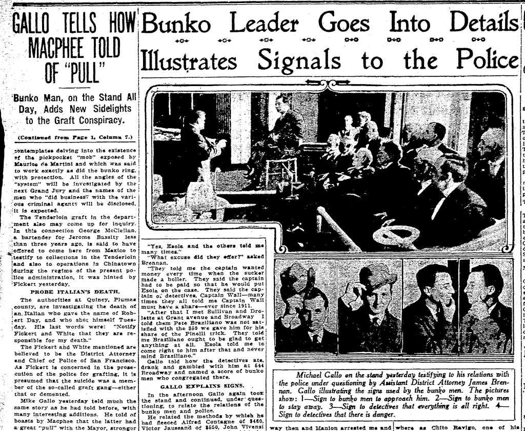 Mike was involved in a big bunco scandal during his trail in 1913 when he confess that he made payments to several policemen where Mike would directly or indirectly paid money for “protection” to assure the operation of the bunko men unhampered by police activity.